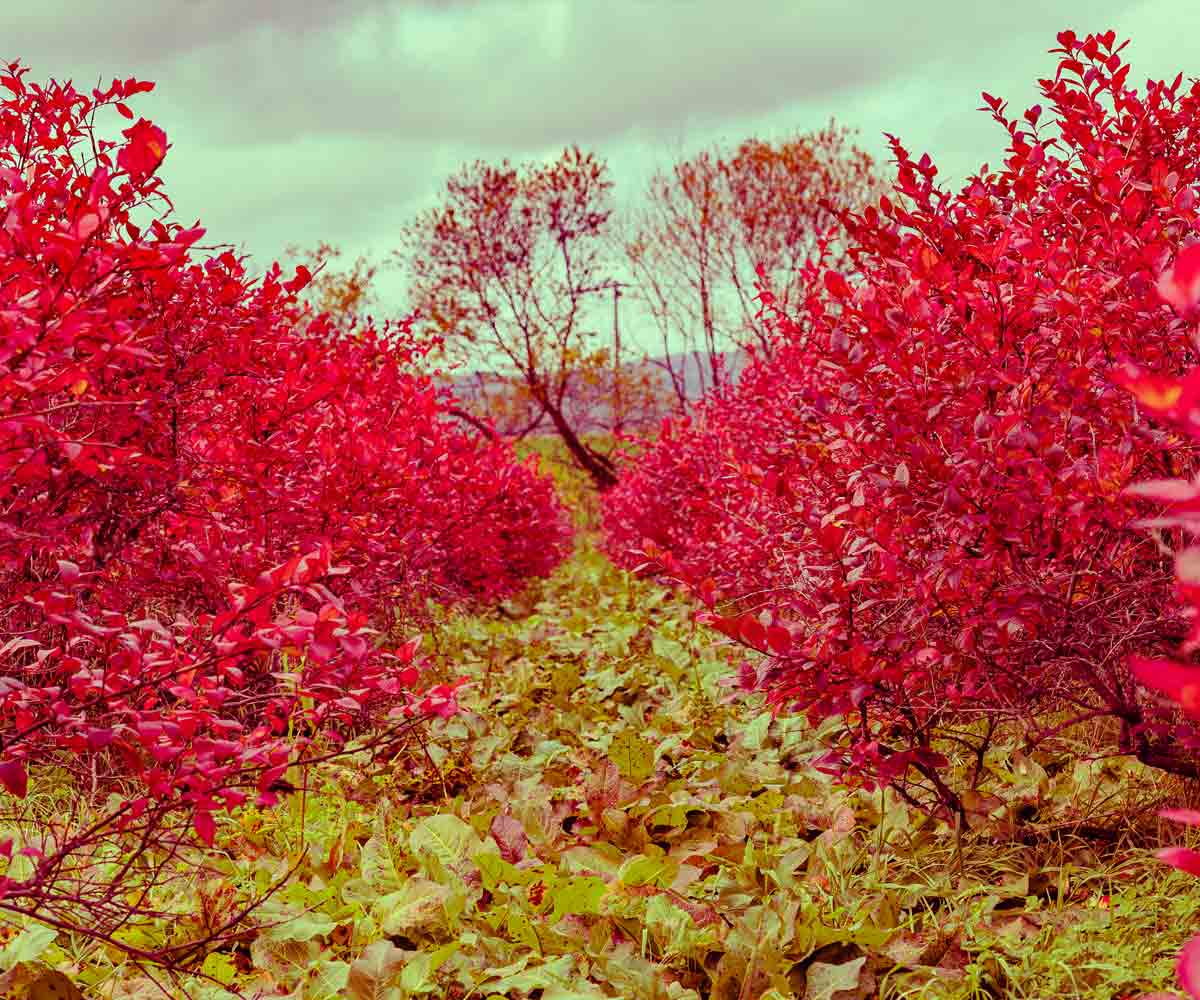 冬が近づくとブルーベリーの葉が真っ赤になり、畑一面、美しく紅葉した様子もご覧いただけます。