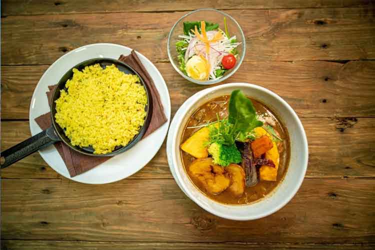スープスパイスのセットメニューには、農場サラダとライスorパンがセットにつきます。農園サラダは採れたて新鮮絶品!ドレッシングも手作りで5種類の中からお好きなものをチョイスしてください。
